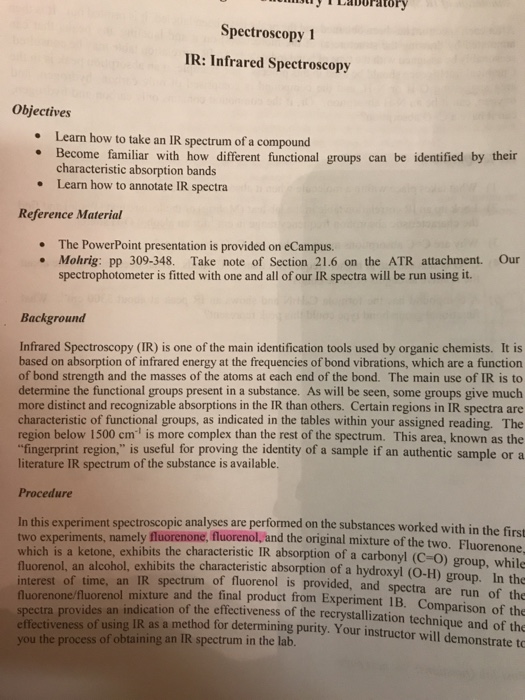 Solved Laboratory Spectroscopy 1 IR Infrared Spectroscopy